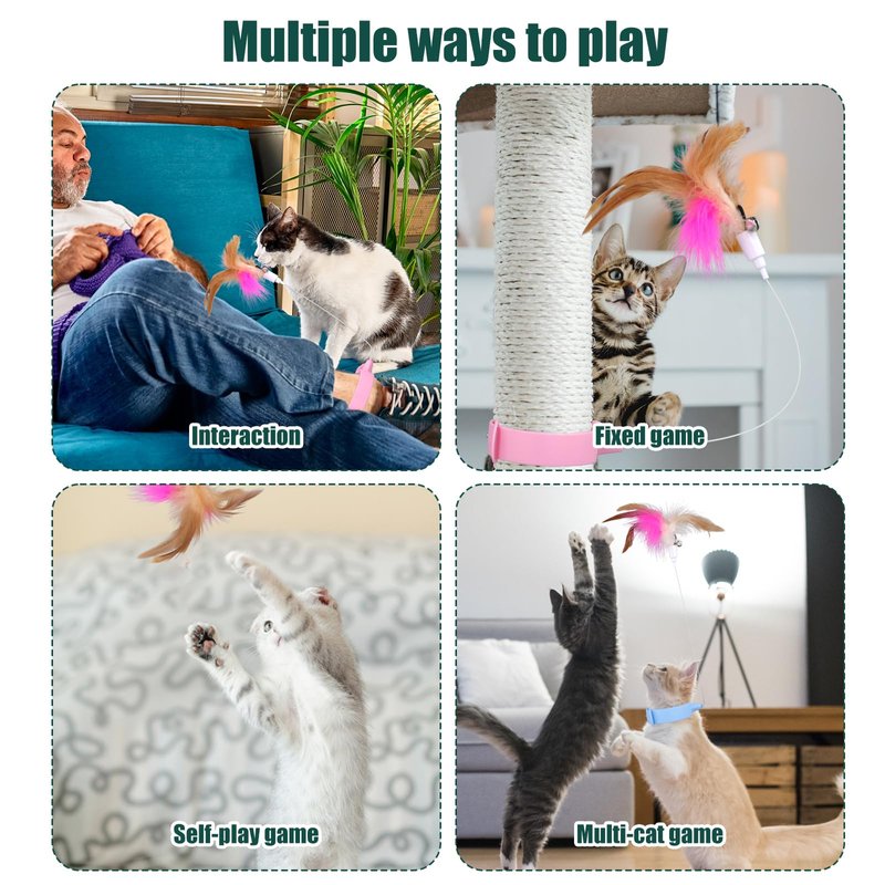 - Package Content: You will receive 2 pieces of collar cat toys and 3 cat teasing wands. The sound of the bell and feathers will attract cats' attention and stimulate their hunting instincts.