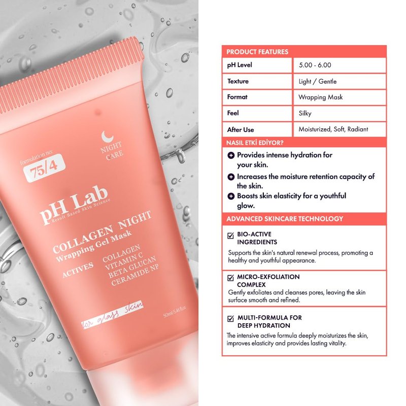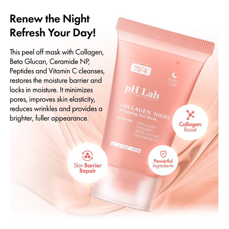 - Wake up to rejuvenated and glowing skin with Ph Lab Collagen Night Mask, designed with active ingredients to enhance skin texture and promote self-renewal.