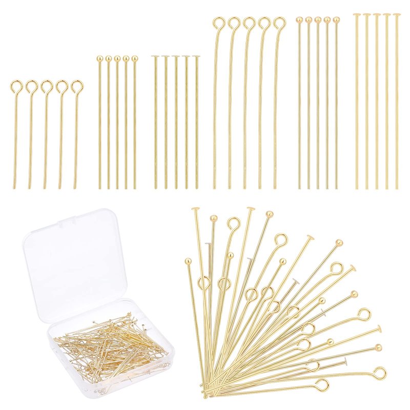 Quantity: 180pcs/set Material: brass Color: golden Size: Brass Eye pin: about 30mm long, pin: 0.7mm, head: 3.5mm, hole: 2mm, 30pcs; Brass Eye pin: about 45mm long, pin: 0.7mm, head: 3.5mm, hole: 2mm, 30pcs; Brass Ball Head pins: about 35x0.6mm, head: 1.8mm, 30pcs; Brass Ball Head pins: about 45x0.6mm, head: 1.8mm, 30pcs; Brass Flat Head pins: about 45x0.7mm, head: 2mm, 30pcs; Brass Flat Head pins: about 35x0.7mm, head: 2mm, 30pcs; Plastic Box: about 7.4x7.2x1.7cm, 1pc. Features: Wide Applications: the metal pins can be used for dangly earring, pendants, necklace, bracelet, anklets, stringing beaded links, connecting chains, DIY craft, jewelry making, crocheting, knitting and DIY crafting.