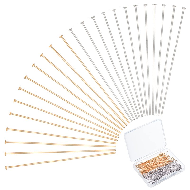 PH PandaHall 304 Stainless Steel Head Pin Findings, 200 pcs 2 Colors 2 Inch Craft Pins for Earring Pendant Jewelry DIY Crafts Making, Golden/Silver
