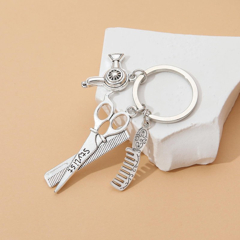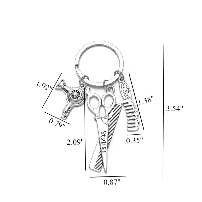 Hairdresser Hair Dryer,Scissor,Comb Charm Pendant Keychain Keyring,Perfect for Salon Owner,or Hair Stylist Gift Jewelry Graduation Gift