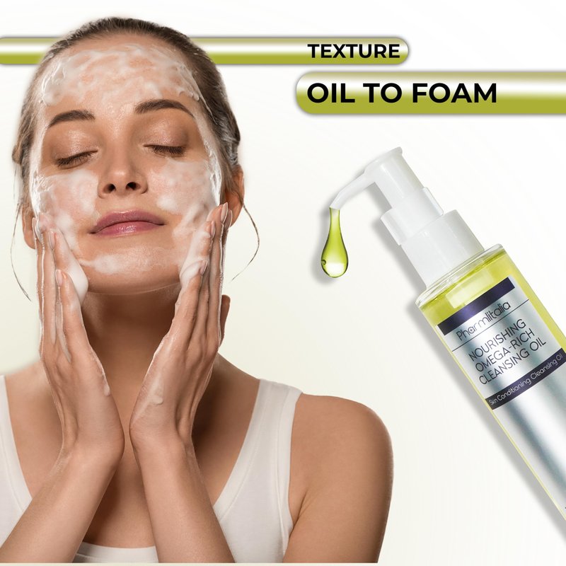 Pharmlitalia Cleansing Oil For Face, Makeup Remover Oil for Dry Skin, Double Cleanser for Sensitive Skin, Cold Pressed Omega Rich Facial Oil Cleanser for Impurities with Castor and Chia Seed Oil
