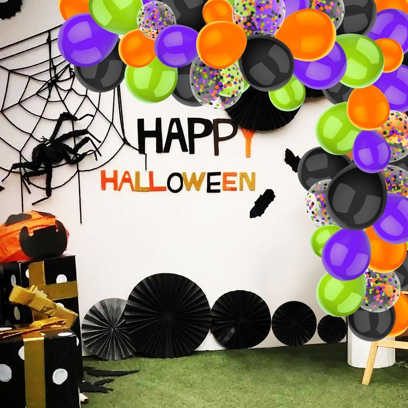2 rolls of ribbon is included to tie up balloons, hang them from the ceiling, above a table, under the veranda, or use them as a balloon garland, make a balloon arch, eye-catching halloween colors balloon set would easily bring a strong halloween atmosphere to your themed party.