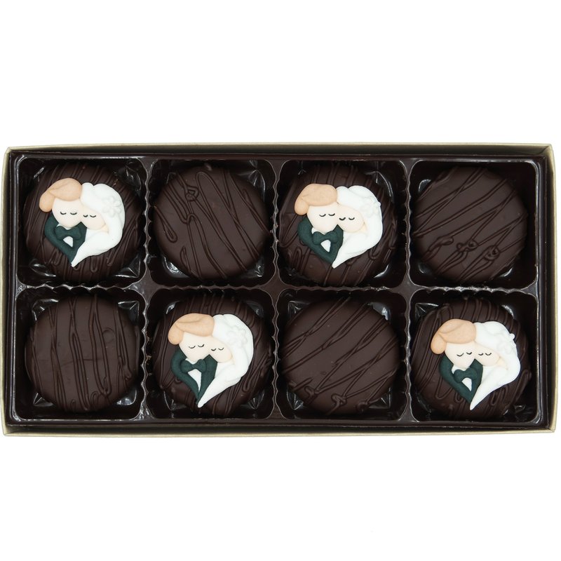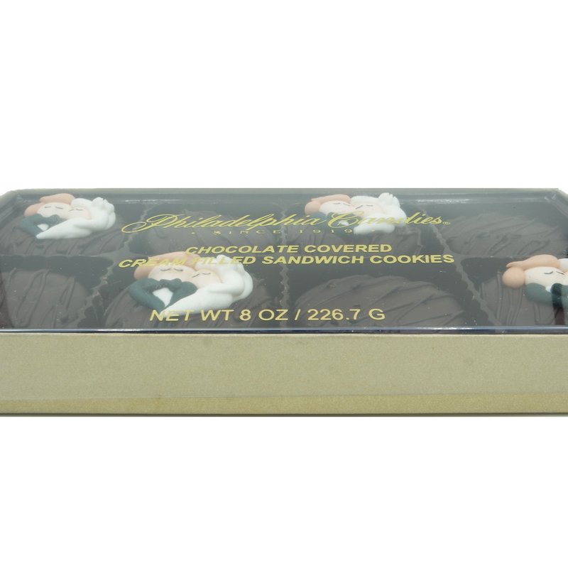 Looking for a unique wedding favor, bridal shower favor, or bride and groom gift? Consider these wedding cookies in upscale, brushed gold packaging. Each gift box contains 8 cookies: 4 decorated cookies with Bride & Groom Heart and 4 plain cookies for the highest visual appeal. Royal icing (sugar) decorations are made in the USA. Made with OREO Cookies covered in Philadelphia Candies dark chocolate. OREO is a registered trademark of Mondelez International. Gift-wrap and personalized message available during checkout. Philadelphia Candies has been manufacturing fine chocolates in Hermitage, Pennsylvania for 100 years. The company was founded in 1919 and operates retail stores in Pennsylvania and Ohio. If you have questions on an order, contact Philadelphia Candies through your Amazon account by clicking on our seller name and then "Ask a question."