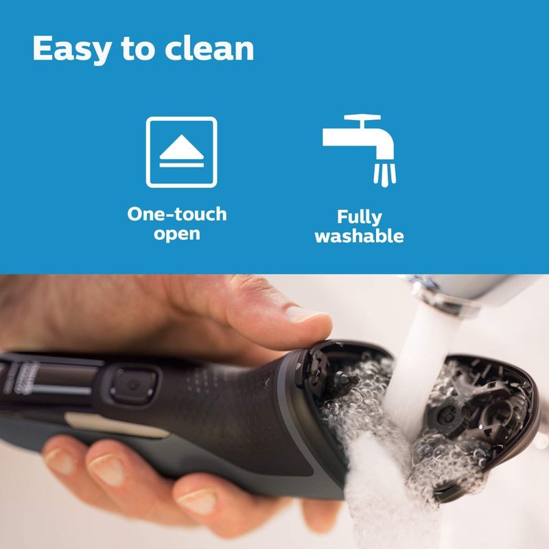 - One-touch open for easy cleaning. Experience a convenient clean shave with heads that flex and float in 4 directions. The head adjusts to the curves of your face, ensuring smooth contact with your skin without a lot of pressure.