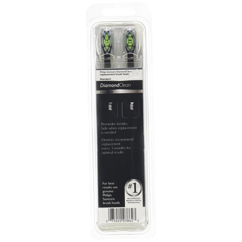 Philips Sonicare Genuine DiamondClean Replacement Brush Heads, Black, 2 Pack, HX6062/94