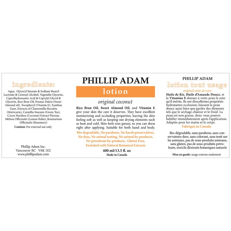 Phillip Adam Coconut Hand and Body Lotion - Lightweight Moisturizer for All Skin Types - 13.5 Fl Oz