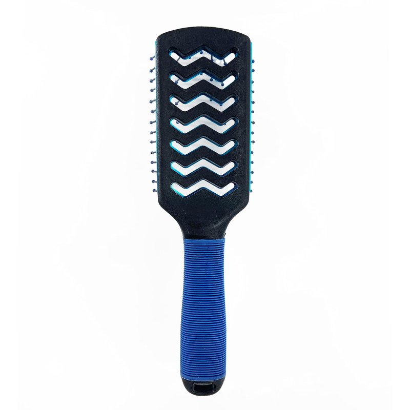 - Hairbrush head is vented constructed with an aluminum base to quickly absorb heat when used with blow dryer, speeding up your blow-drying process and saving you time! Rubber handle grip prevents heat from transferring to your hand