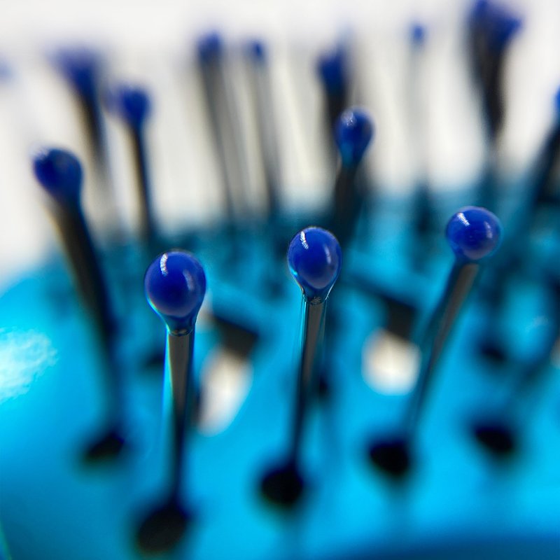 - Flexible nylon bristles are each poly tipped to flow gently through your hair and reduce snags and tugs. Nylon bristles are anti-static for easy and effective styling. Great for a bangs brush!
