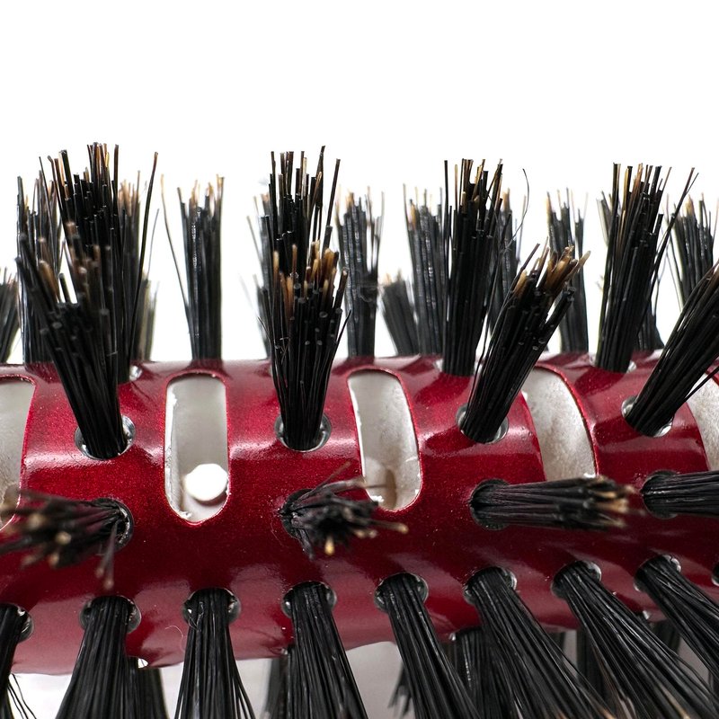 - Mixed Boar and ionic nylon bristle reinforces the bristle’s stiffness and provides strong penetration for thick and coarse hair. Boar bristles contains natural oil which is suitable for repairing cuticles and distributes natural oil evenly from scalp to end of hair, conditions and promotes smooth, healthier hair. The Ionic nylon bristles can sustain heat to 160-180 degrees Celsius under normal use and is considered the best nylon material for professional hair brushes.