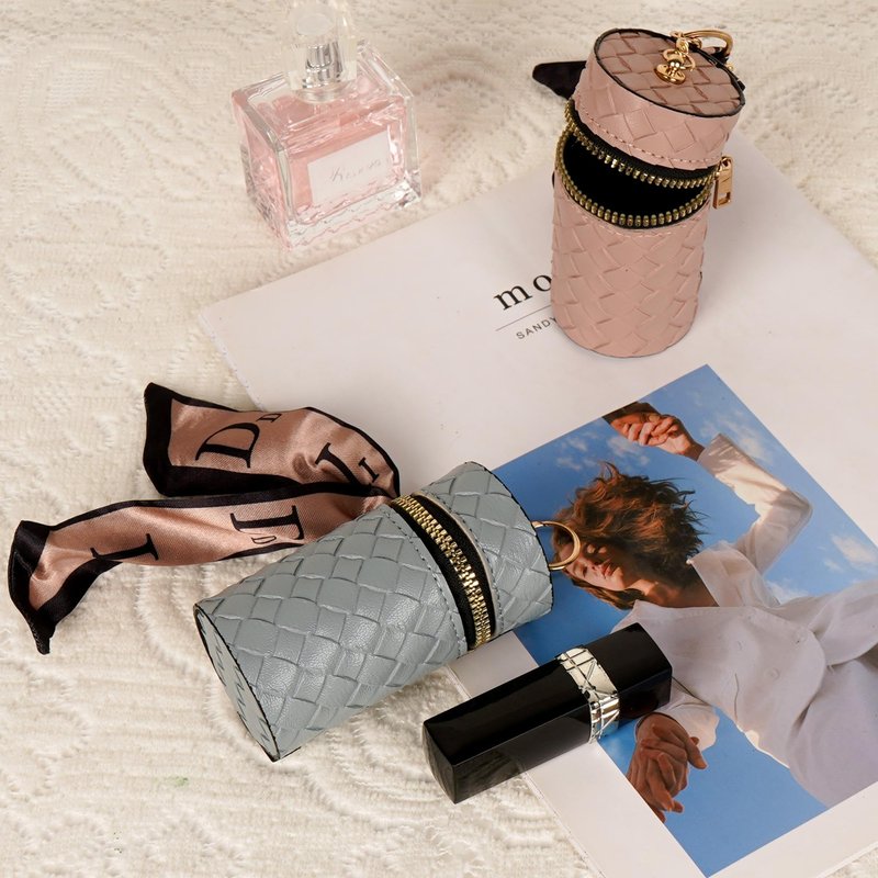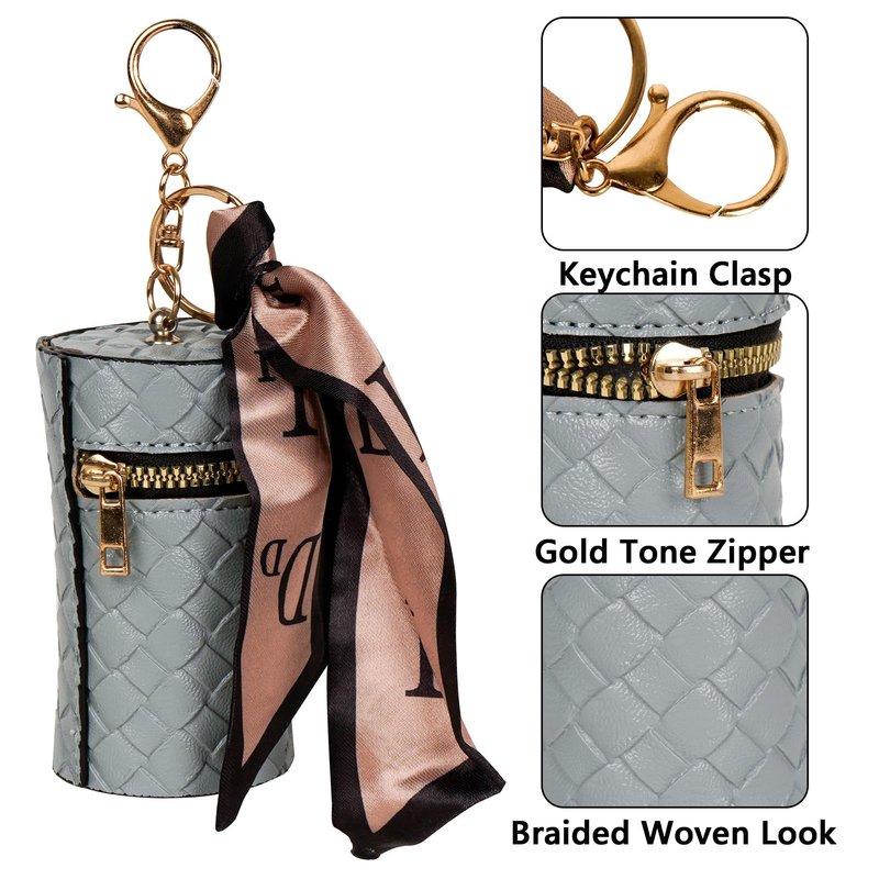 Elevate your beauty routine with th stylish 2-Pack Mini Braided PU Leather Lipstick Case for 1 Lipstick, designed to store your lipsticks and small beauty essentials in a chic, portable fashion. Made from synthetic leather with a stylish braided texture, this cylinder-shaped case is great for carrying on-the-go, whether you are out for a day of errands or traveling. The smooth zipper closure ensures your cosmetics stay secure, while the detachable scarf adds a touch of sophistication. Plus, the keychain hook lets you conveniently attach it to your bag or keys