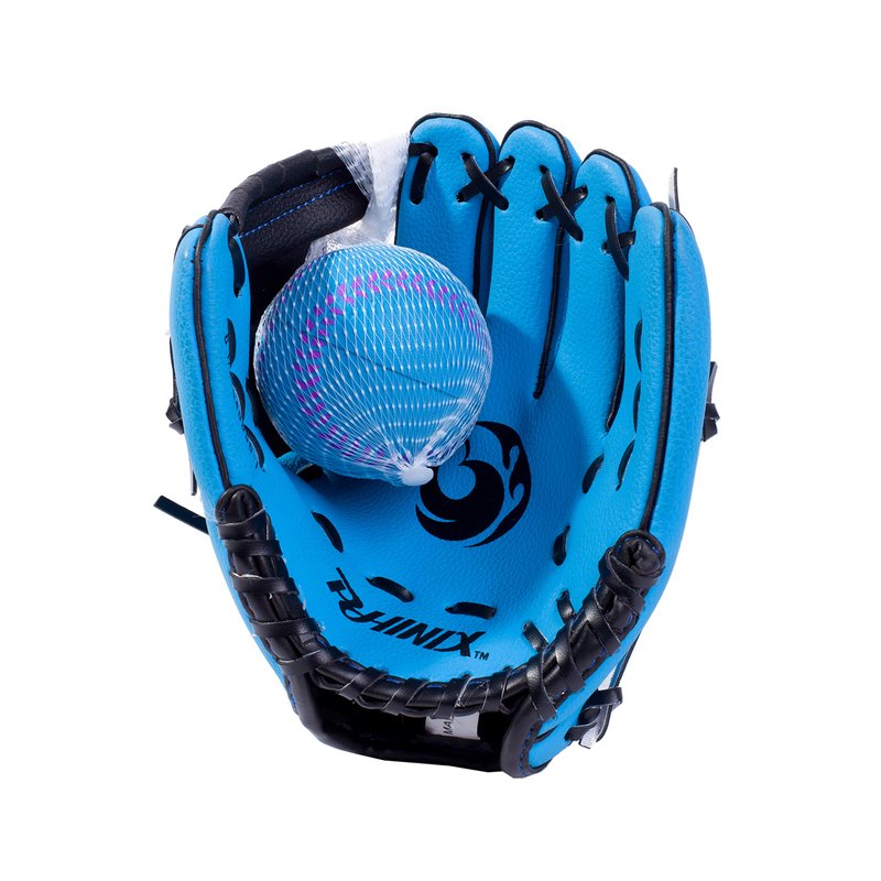 PHINIX 9" Baseball Glove Tee Ball Mitts and Foam Ball for Kids Beginner Play Training Right Hand Throw Blue