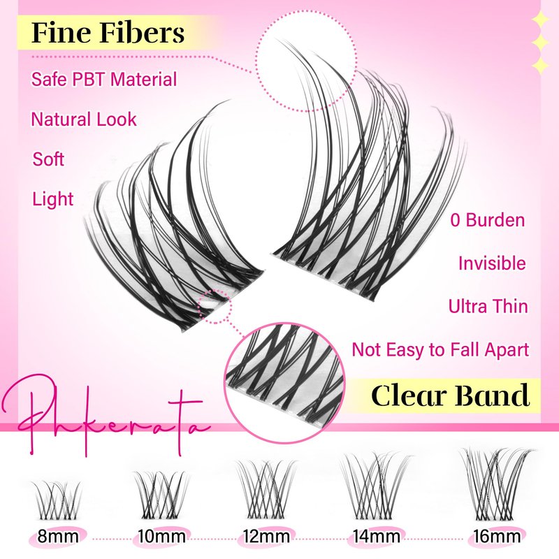 - Invisible Band Individual Lashes: The thin invisible lash band fits perfectly to the natural lashes. Wispy clear band lashes clusters are worn with 0 burden, not easy to fall apart, and blends seamlessly with natural lashes, eyelash extension kit provides a light and graceful appearance
