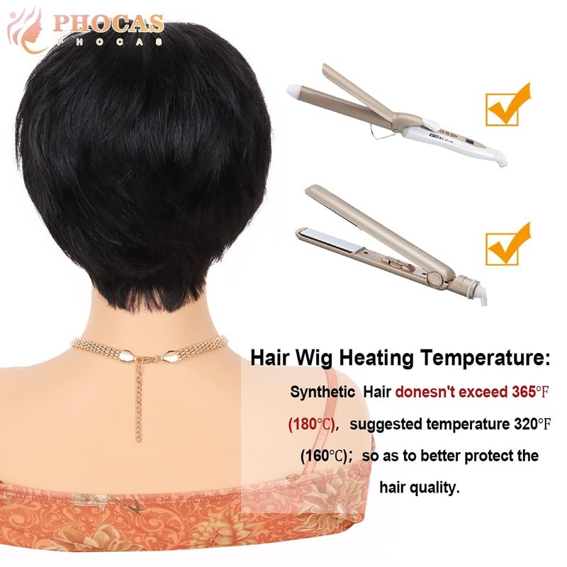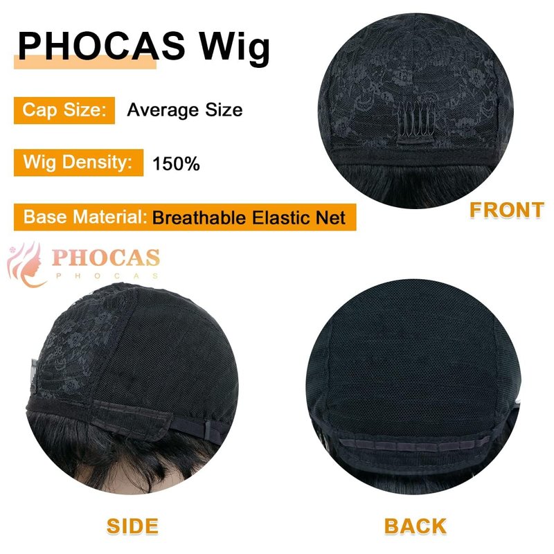 - Human Hair : PHOCAS short human hair pixie wigs are made of 100% real human hair, soft, shedding and tangle free,easy to comb,gives you beautiful result