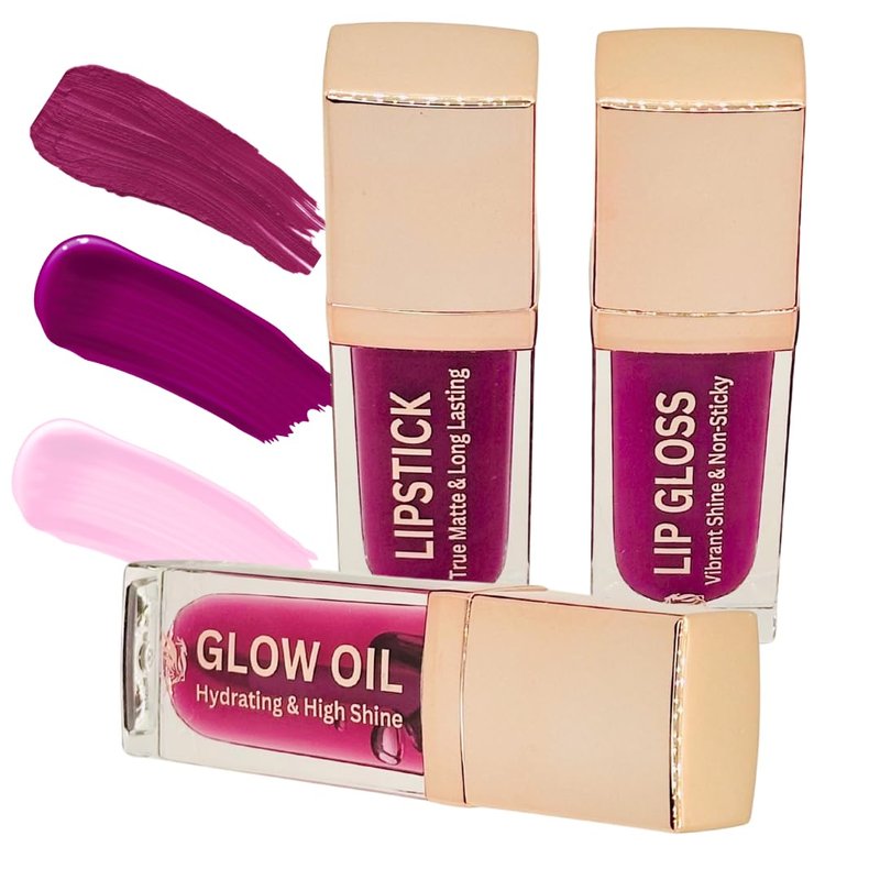 - [Versatile Lip Collection]: This set includes a Liquid Matte Lipstick for a long-lasting, smudge-proof & uber-matte look, a Vibrant Lip Gloss for a shiny, eye-catching finish, and a Lip Glow Oil for deep hydration with a subtle tint, all in the same stunning shade for versatile lip looks.