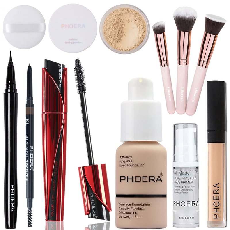 PHOERA Foundation,all in one makeup kit,phoera flawless matte liquid foundation makeup set