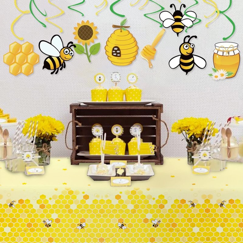 - 🐝MULTIPLE USES: Hang them up on doors or walls as decorative backdrops, put them across the room as banners for little bee themed Wedding Anniversary baby Shower Birthday party decoration, great as a table cover for your kids’ painting arts and crafts.