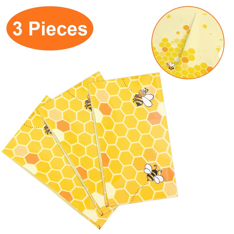 - 🐝BEE TABLE CLOTHES: 3 Pieces Bumblebee Tablecloths measured 51 x 86inch (130 x 220cm), for multiple tables and set ups. Honey Bees element designs, ideal for Spring Summer party decoration, bee themed birthday wedding baby shower girl tea party’s table cover.