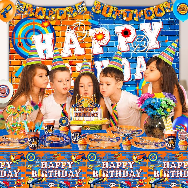 - RELIABLE & SATISFACTORY SERVICE: Your satisfaction is our top priority. Take your dart war party to the next level with PHOGARY Dart Battle Tablecloths, the ultimate nerf party decorations and nerf gun party supplies for a memorable event. Enhance your setup with our comprehensive range of nerf party decorations to create an unforgettable celebration.