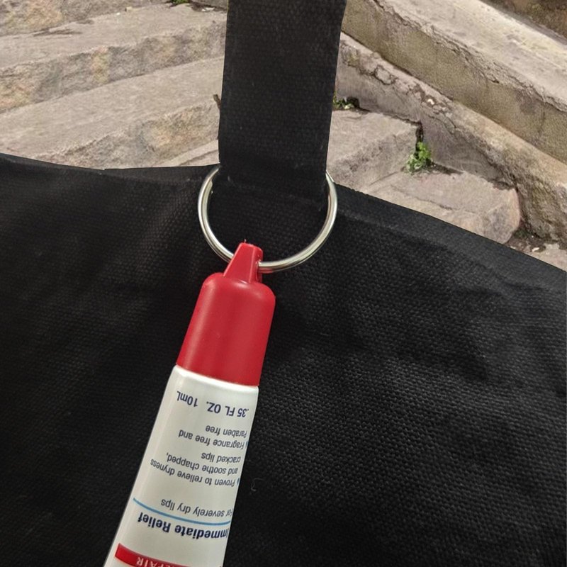 - Lip balm replacement cover with a hole for your split ring on your keychain.Helps keep from losing your lip balm.