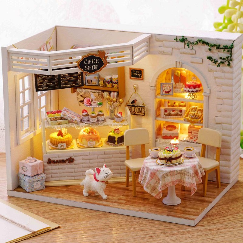 - Excellent Quality & Exquisite Designed - Materials are of excellent quality, miniature furniture and other wooden pieces are precisely cut so that they fit together perfectly. Cat, cakes, cupcakes, desserts, ornaments, these miniature dollhouse accessories are realistic, exquisitely and simply designed. Dust cover can protect the dollhouse from getting dirty
