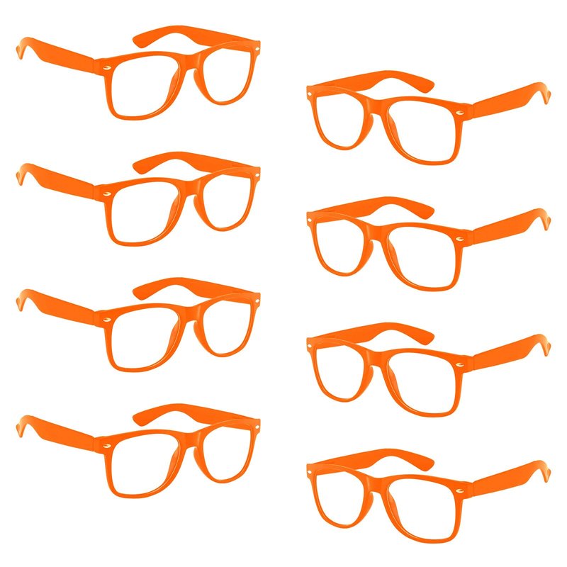 Pibupibu 8/20 Packs Kids/Adult Frame Only No Lens Orange/Multicolor Glasses Party Favors Supplies (Adult 8 Pack-Orange)