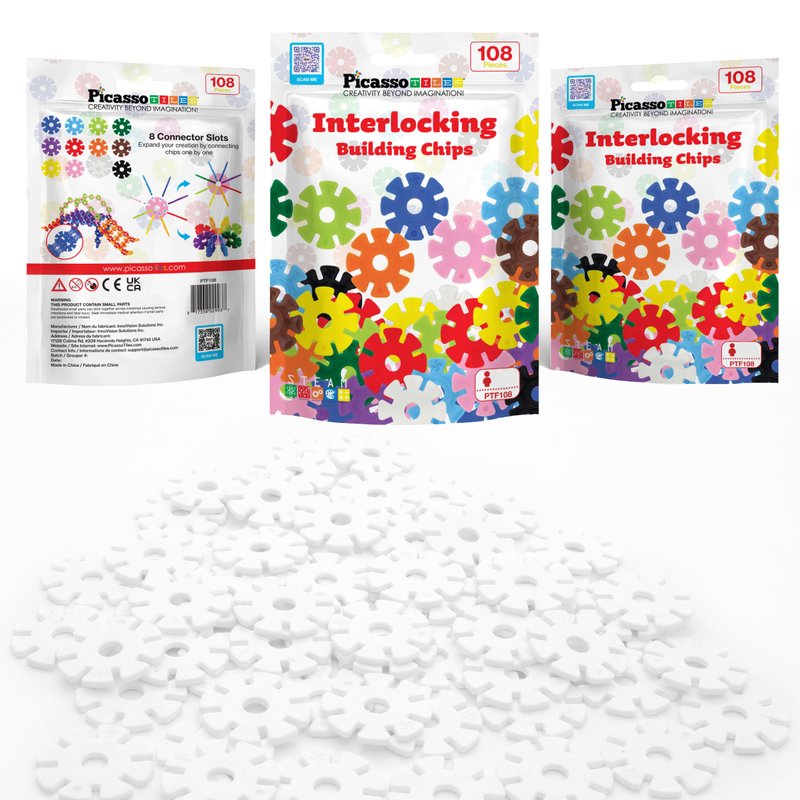 - UNLEASH CREATIVITY: Dive into a world of imagination with our 108-piece interlocking building chip set, available in white. Designed for effortless assembly, these chips snap together seamlessly, paving the way for endless innovative structures. Just interlock two discs and embark on your engineering journey. Ideal for encouraging creative exploration and architectural innovation, this set welcomes builders of all ages to dream big and build bigger