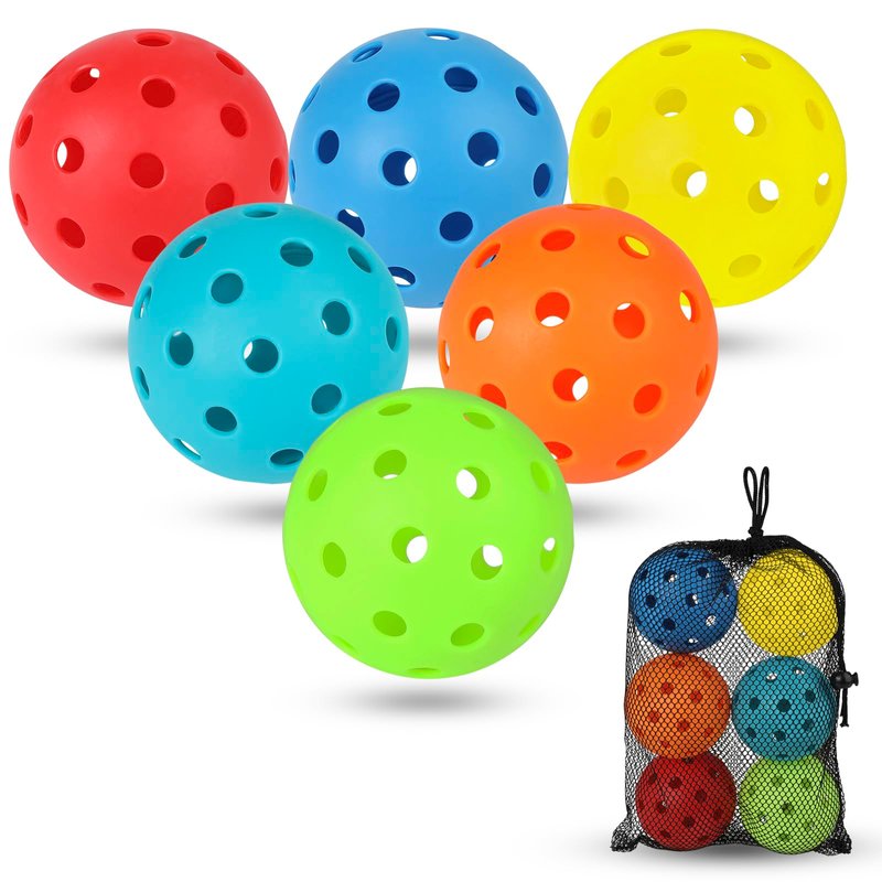 - 【Six Different Colors of Pickleballs】 The vibrant colors provide high visibility and are easy to spot for outdoor sports. Even in low light conditions, our outdoor pickleballs provide a greater field of vision. Our pickleballs are suitable for any type of pickleball paddle, including graphite, fiberglass or wood paddles.