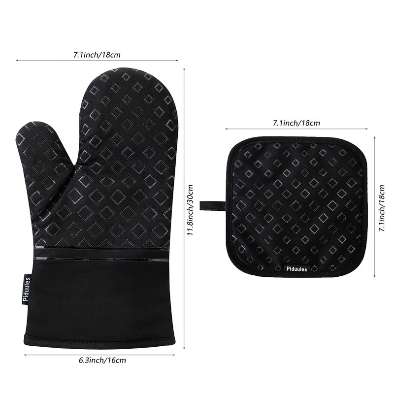 Piduules Set of 4 Oven Mitts and Pot Holders, 482 F Heat Resistant Hot Plate Moving Non-Slip Gloves for BBQ, Grill, Baking, Cooking, Oven, Microwave (Black)