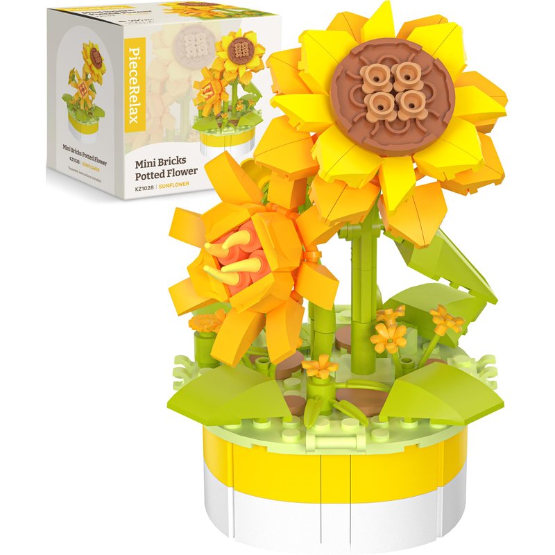 PieceRelax Flower Bouquet Building Decoration Set Artificial Flowers Mini Bricks Potted Sunflower Home Accessories or Best Gift Valentine Décor for Him and Her Botanical Collection for Adults [KZ1028]