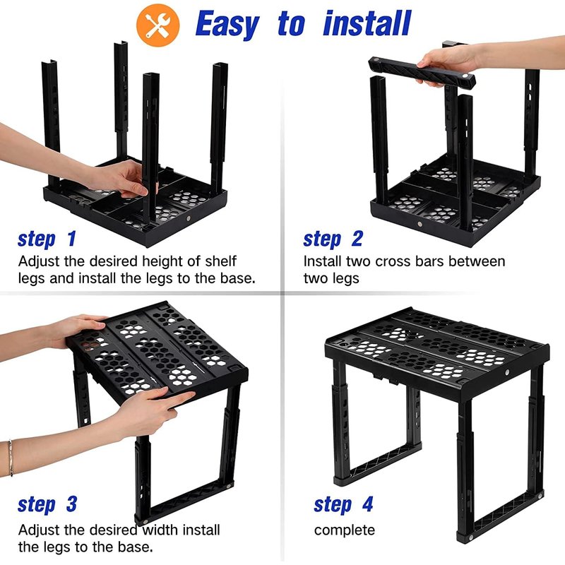 - STACKABLE: Stack one shelf on top of the other when purchasing multiple units. Legs of top shelf insert into top of bottom shelf. Create a shelf wherever you need one, or combine multiple shelves for tons of extra storage.