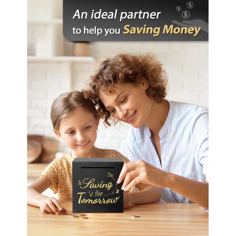 - 【Saving for a Rainy Day】The stainless steel adult piggy bank with a gold "Saving for Tomorrow" printed on the front, adds a touch of fun and decoration to your savings. The simple and delicate style can also be decorative to match your room