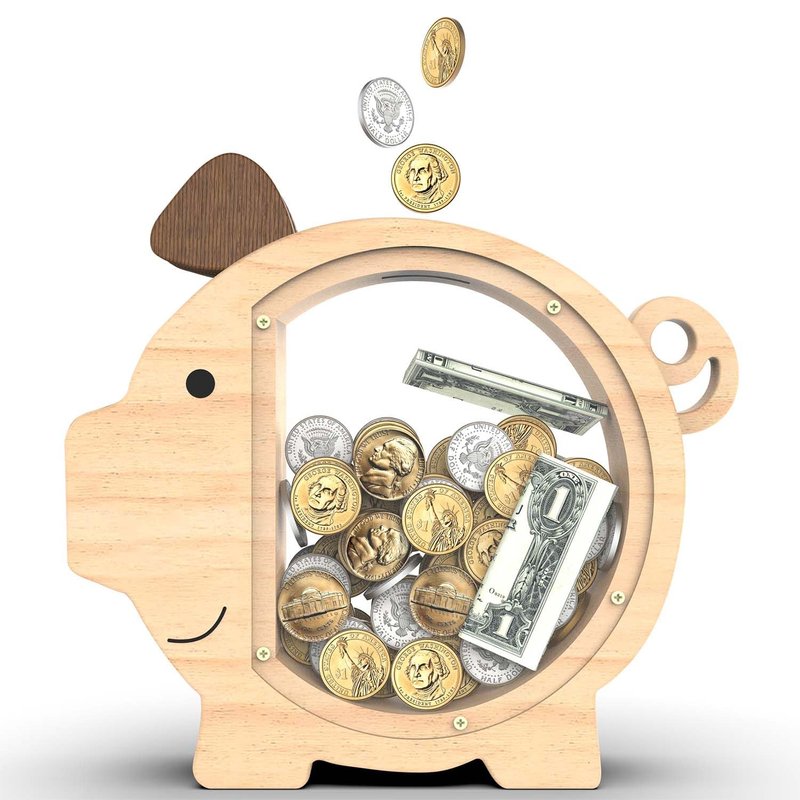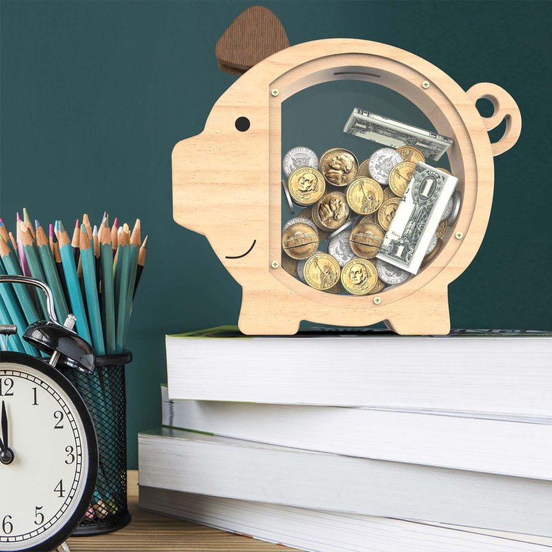 Made from high-quality wood and acrylic, this piggy bank is built to last.