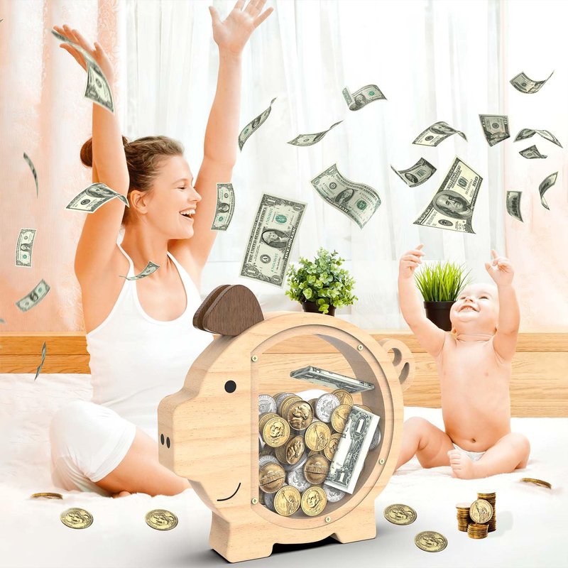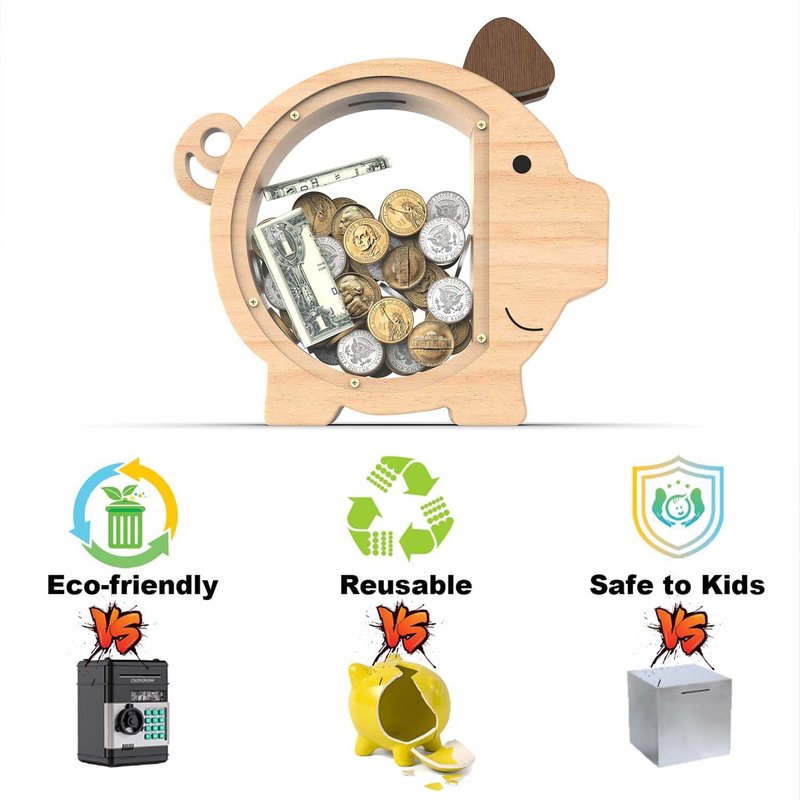 - 💰【Durable Materials】: Our piggy bank is made of natural wood, which is environment friendly,hard and unbreakable.Each piggy bank has been carefully polished by hand, with a smooth and delicate touch without burrs, making it suitable for children aged 3 and above.