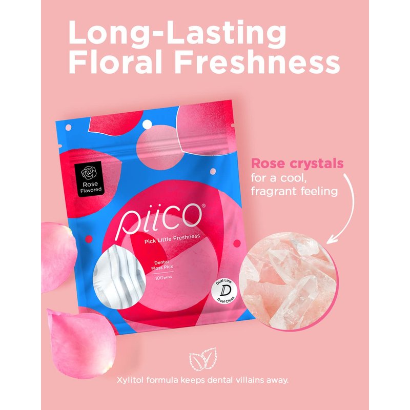 - One-Of-A-Kind Floral Flavor, a daily routine that can instantly transport you to a rose garden? Only with Piico. Xylitol powered rose flavored dental floss picks blocks oral enemies with a refreshing floral taste and hint of mint.