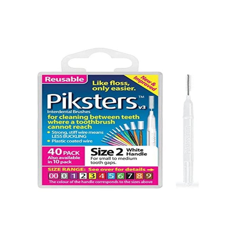 Piksters Interdental Brushes (40 Pack, Size 2 (White))