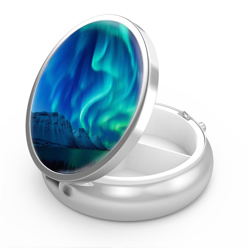 Pill Box 3 Compartment Medicine Pill Case,Portable Pill Box for Pocket or Purse Pill Box Decorative Metal Medicine Vitamin Organizer Unique Gift(Northern Light)