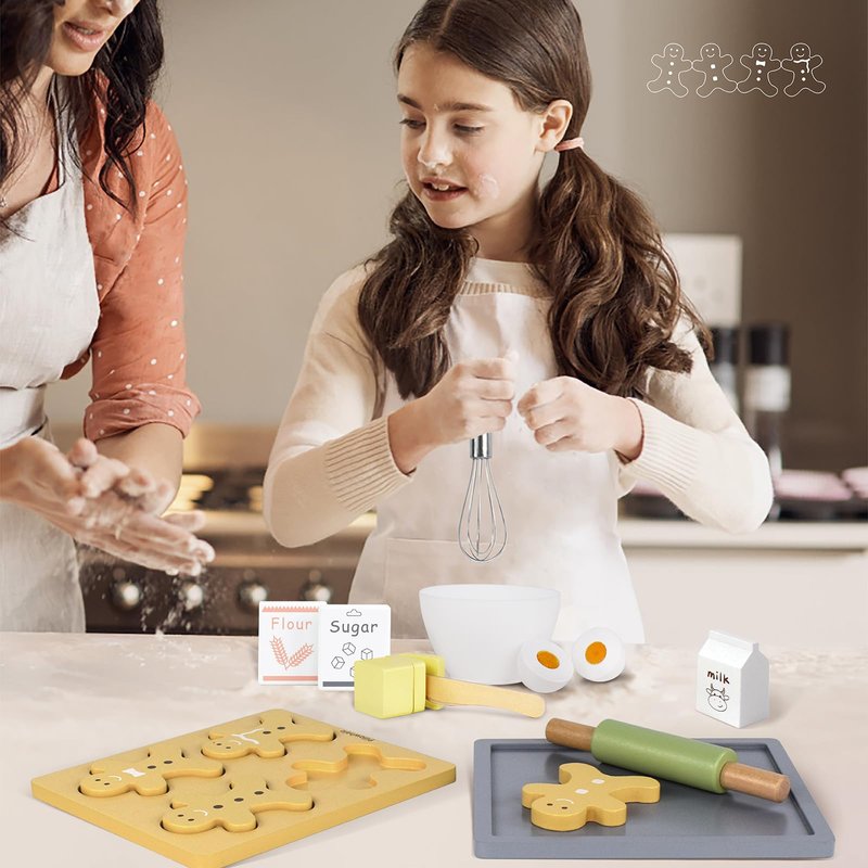 - KIDS BAKING SET - Baking time! What delicious cookies will little bakers make with this baking kit? This wooden cookie set inspires and develops imagination and creativity, providing hours of fun for your little one!