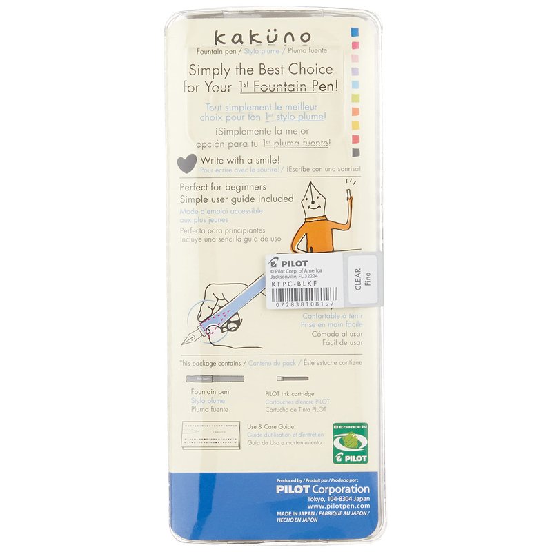 - Pilot Kakuno Fountain Pen: Designed with novice and experienced fountain pen users in mind, the Kakuno features a smiley face on the finely crafted nib to ensure the perfect writing position