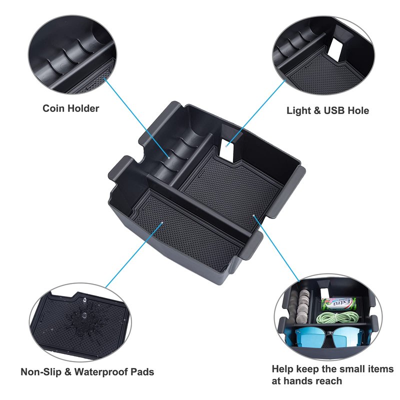 - HIGH QUALITY: This center console tray is made of high-quality ABS plastic material with a matte finish and non-slip rubber pads which keep things from sliding around and rattling inside.