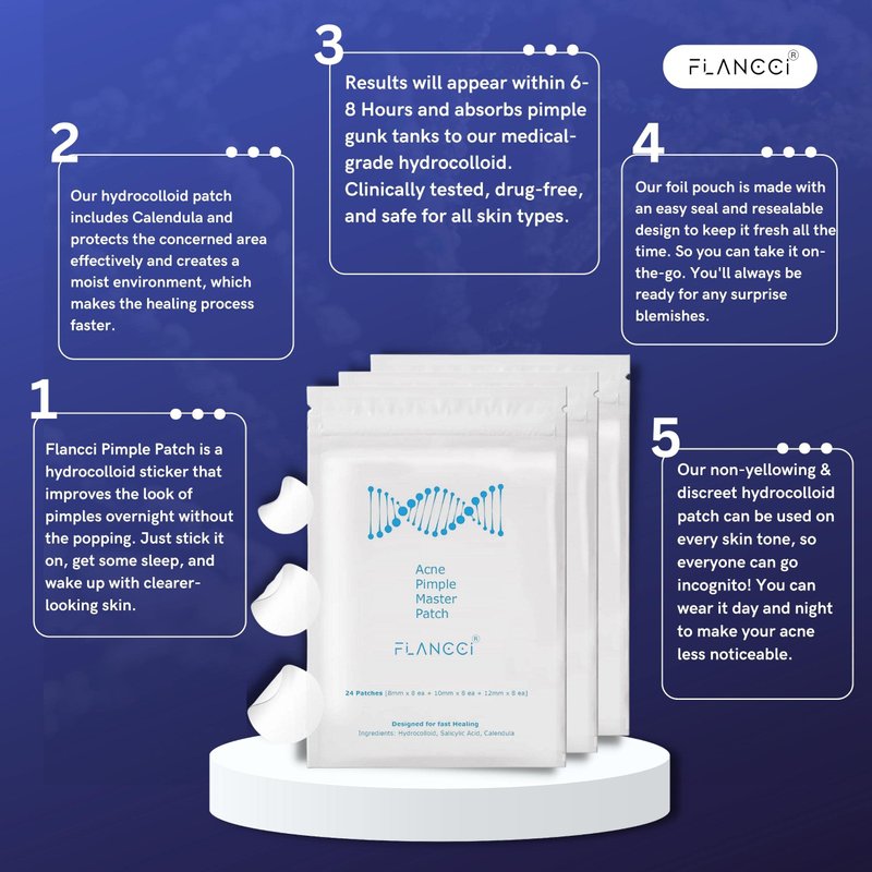 - ✅ Flancci Pimple Patch is a hydrocolloid sticker that improves the look of pimples overnight without the popping. Just stick it on, get some sleep, and wake up with clearer-looking skin.