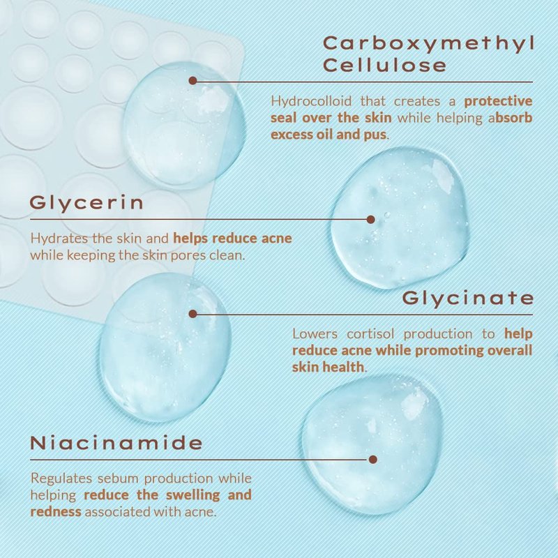 - Not your ordinary zit cream & self care acne pads, our responsibly sourced zit patches for acne is infused with niacinamide that helps reduce acne while keeping pores clean. These hydrocolloid patches contain nontoxic chemicals & are hypoallergenic & non-drying. 100% Made in the USA.