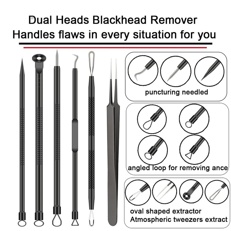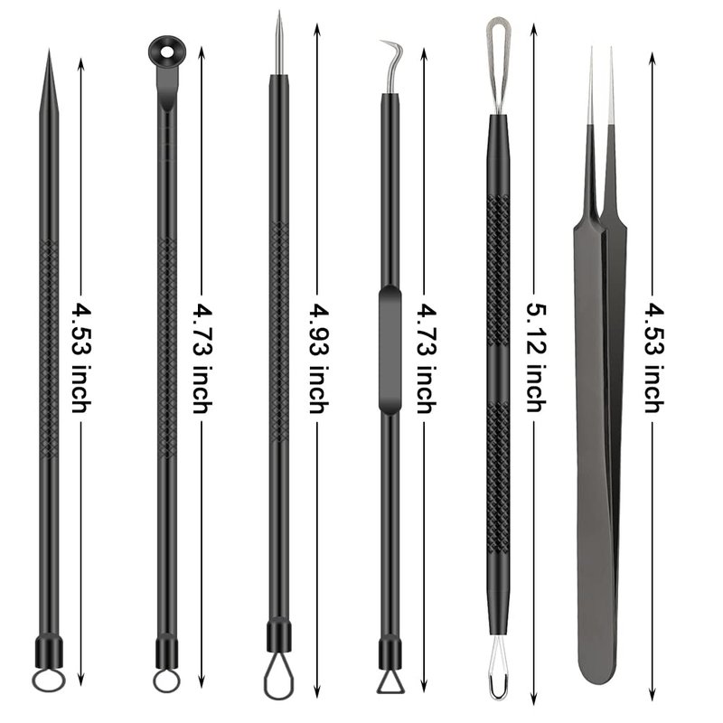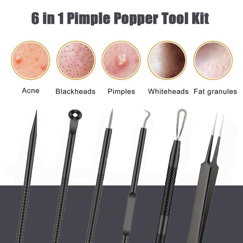 - ⭐ PIMPLE POPPER TOOL KIT - Perfect combination 6 in 1 different black head remover tool can help to remove blackheads, whiteheads, acne, blemishes, splinters and zit popping on your chin, cheek, forehead body.and nose easily.