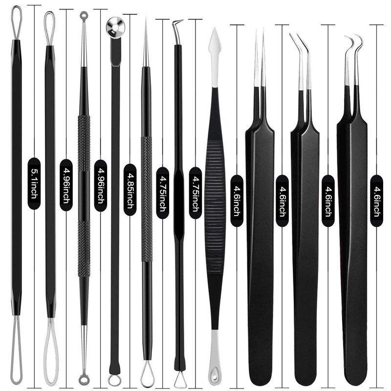 - ✔ Pimple Popper Tool Kit: 10 different style blackhead remover tool can help to remove blackheads, whiteheads, acne, various, blemishes and zit popping on your chin, cheek, forehead and nose easily. No need to spend thousands with professionals that you can get the same effect and boost your confidence with our pimple extractor.