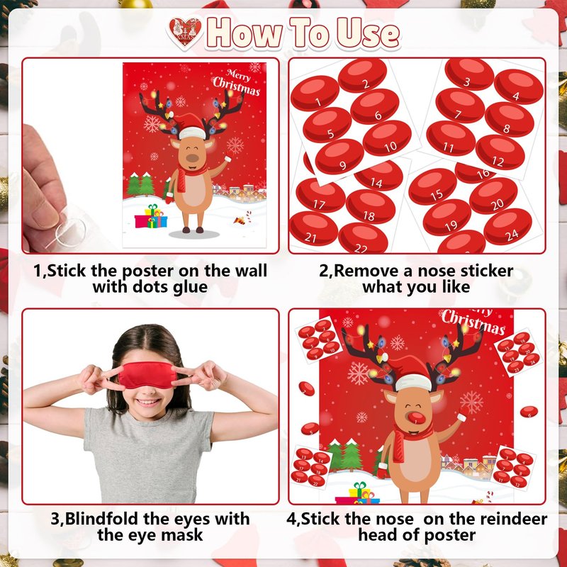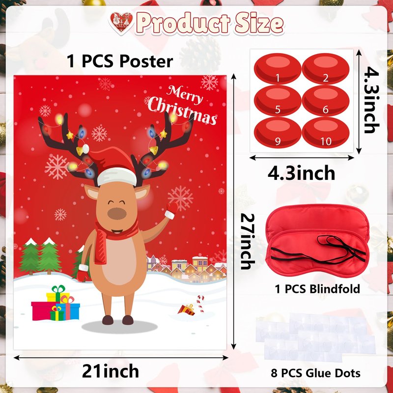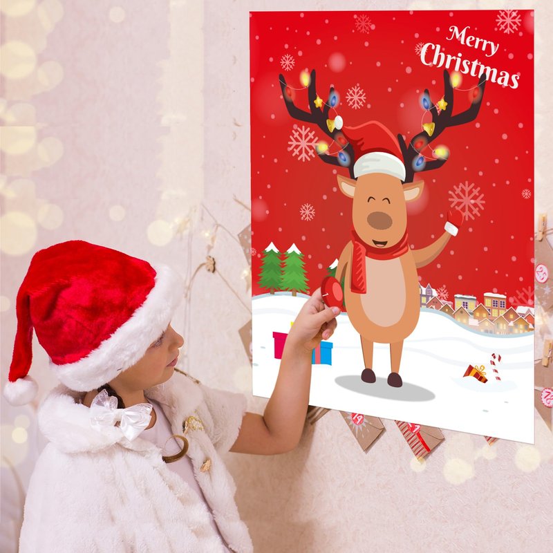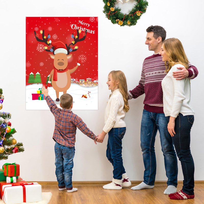 Introducing AINECON's Pin Deer Game, the perfect addition to any Christmas party! This holiday season, keep your kids entertained with our Pin The Nose on The Reindeer Game, made for large groups with up to 24 players. This fun and festive game is perfect for both kids and adults, making it a great activity for the whole family to enjoy together. The game comes with 24 nose stickers, allowing all players to take turns trying to pin the nose on the reindeer. Not only is this game a great way to keep the kids entertained during your holiday party, but it also makes a great Christmas party favor. Keep the fun going throughout the season and enjoy countless hours of entertainment with this Pin The Nose On The Reindeer Game. Get your hands on AINECON's Pin Deer Game today and make your holiday party one to remember!