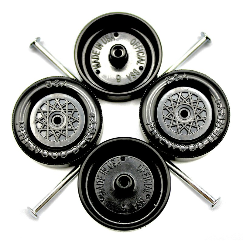 Pine Derby Car BSA Speed Wheels and Axles Kit | Professionally Lathed | Pinewood Car Wheels