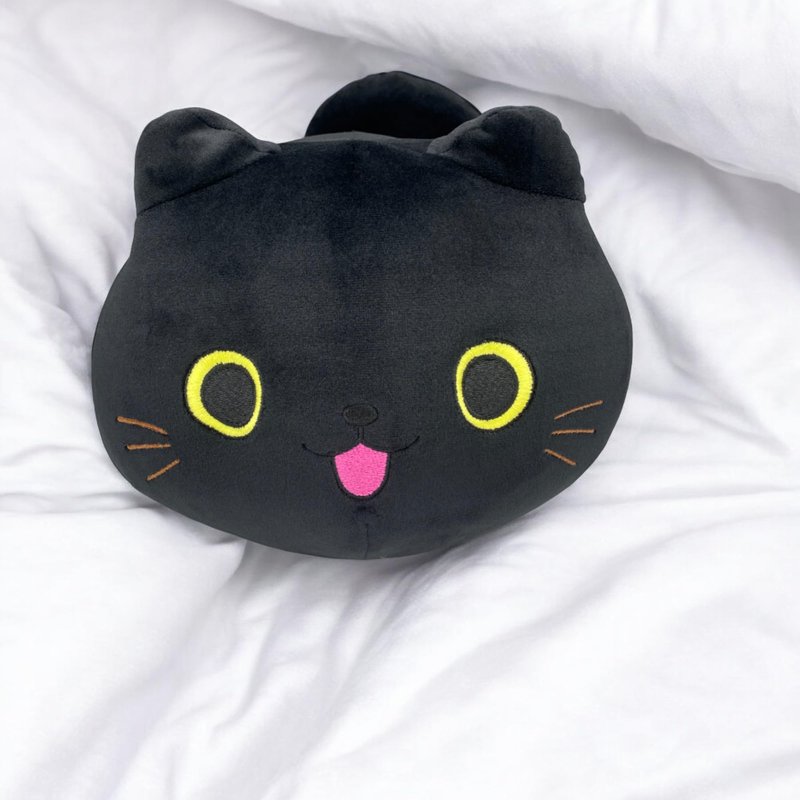 - CUTE DESIGN: Our black cat plush is perfect for fans of stuffed animals, cute plushies, or those who love cat stuff. This cat pillow makes a great addition to any collection of plush toys.