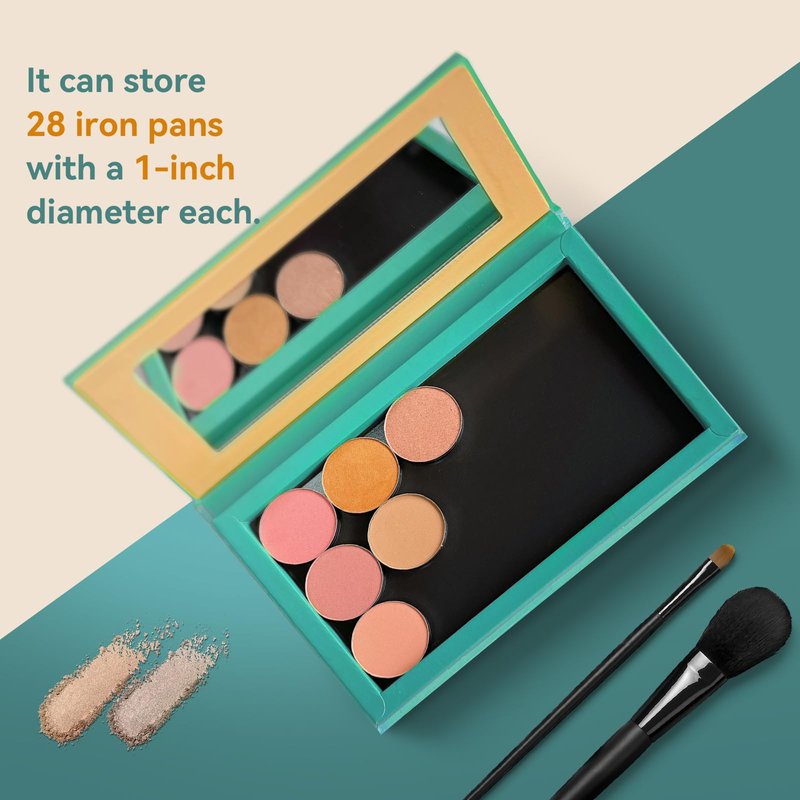 - Spacious DIY Empty Makeup Containers: The dimensions of the empty magnetic palette are 8.06" L x 5.11" W x 0.71" D, allowing you to store up to 28 iron pans with 1-inch diameter eyeshadows.