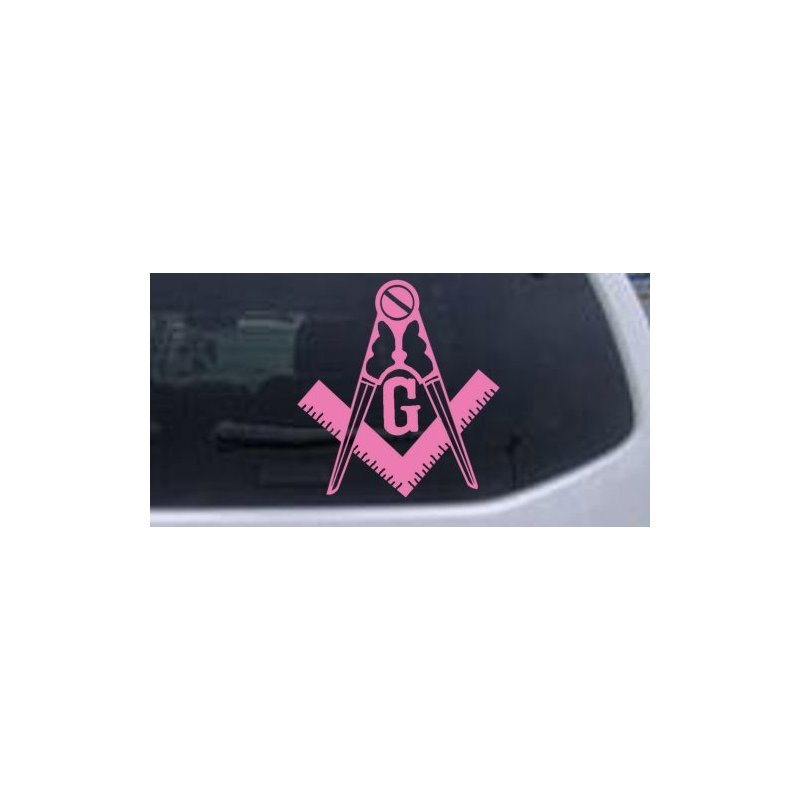 Pink 4in X 4.3in -- Masonic Square and Compass Car Window Wall Laptop Decal Sticker