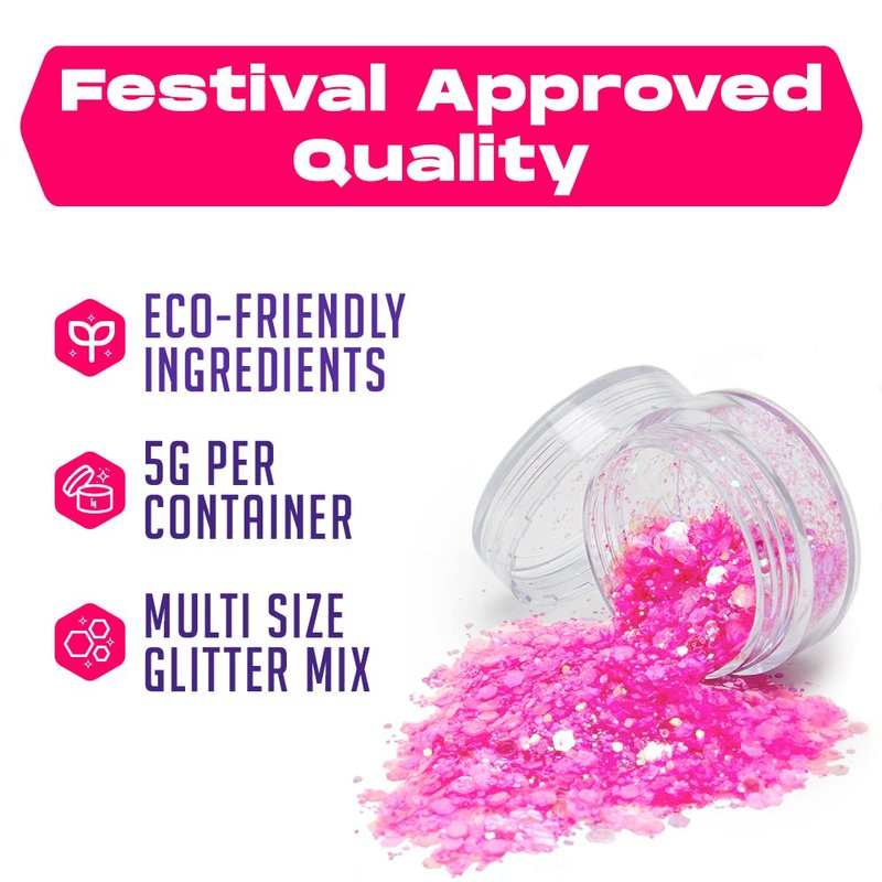 Your search for the best face and body glitter is over! Achieve a festival look with Glitter makeup, or choose from our range of glittery finishes for that all-important extra sparkle! Our exclusive silver gold pink and blue body glitter is made of biodegradable glitter making it safe to wear on the face or body. We have a huge variety of face and body glitter to choose from. Our beloved Body Glitter is the highest quality, longest-lasting, cosmetic glitter on the market. Our Cosmetic Glitter is finely milled for a lightweight, nearly invisible finish that looks great on faces, eyelids, and anywhere else you want to beautify. With our shimmering body glitter, you can shine like a star for your next rave or music festival! Mix, match, and add to any outfit seamlessly.